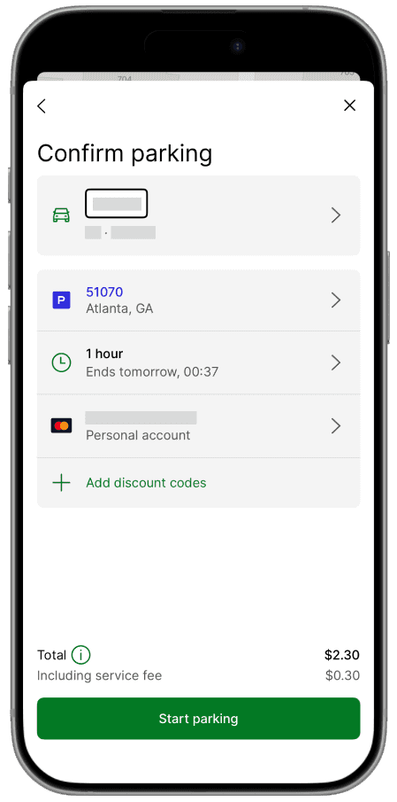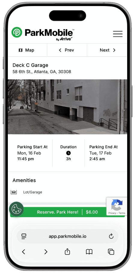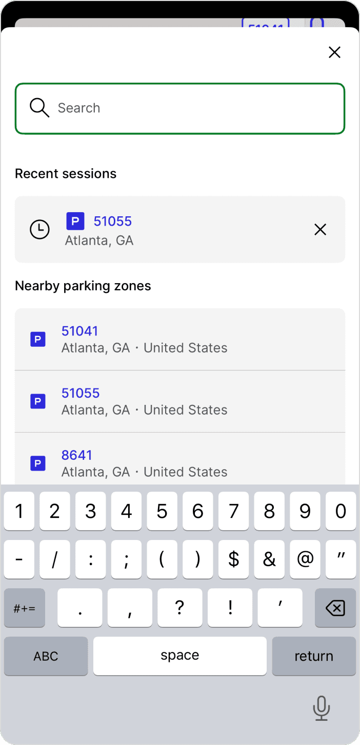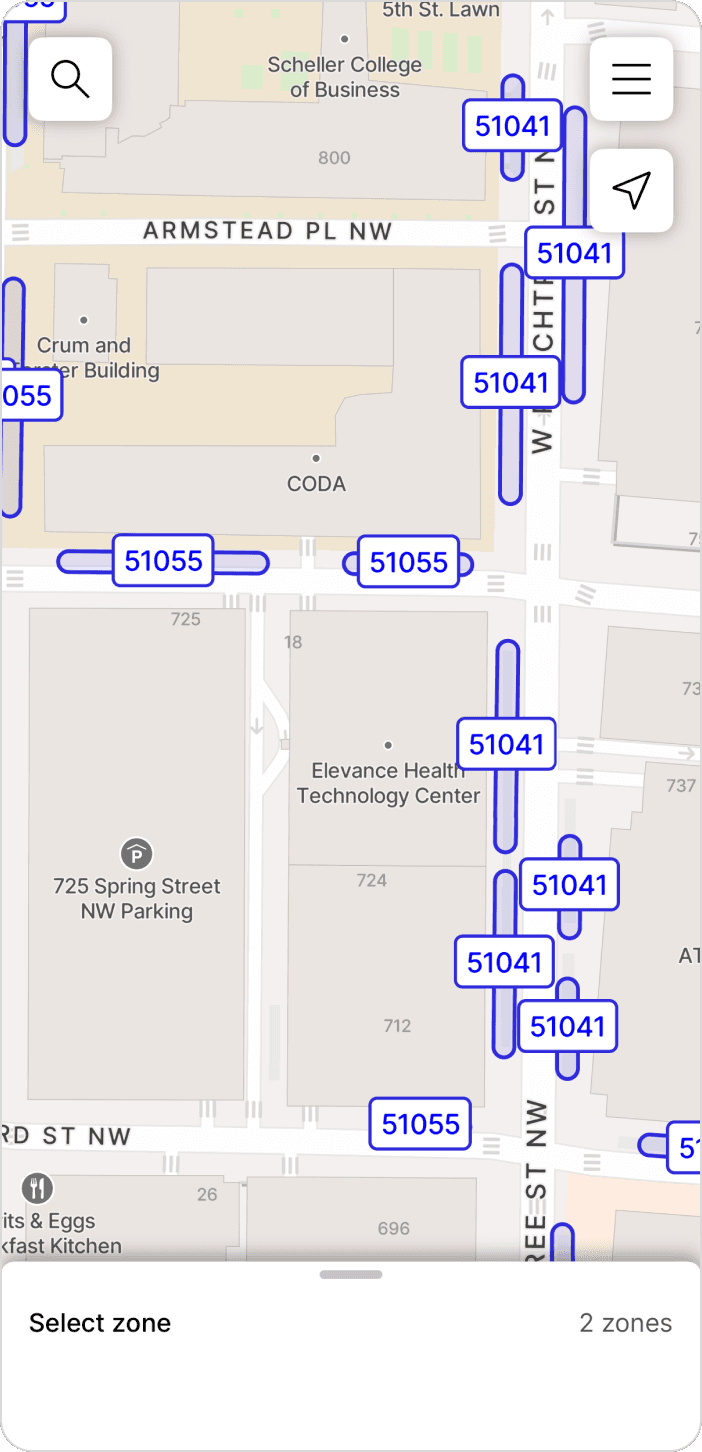 Drivers can search their destination before beginning their trip to preview nearby parking zones. This allows them to view pricing, amenities, and parking availability so they can plan where to park before entering busy areas.