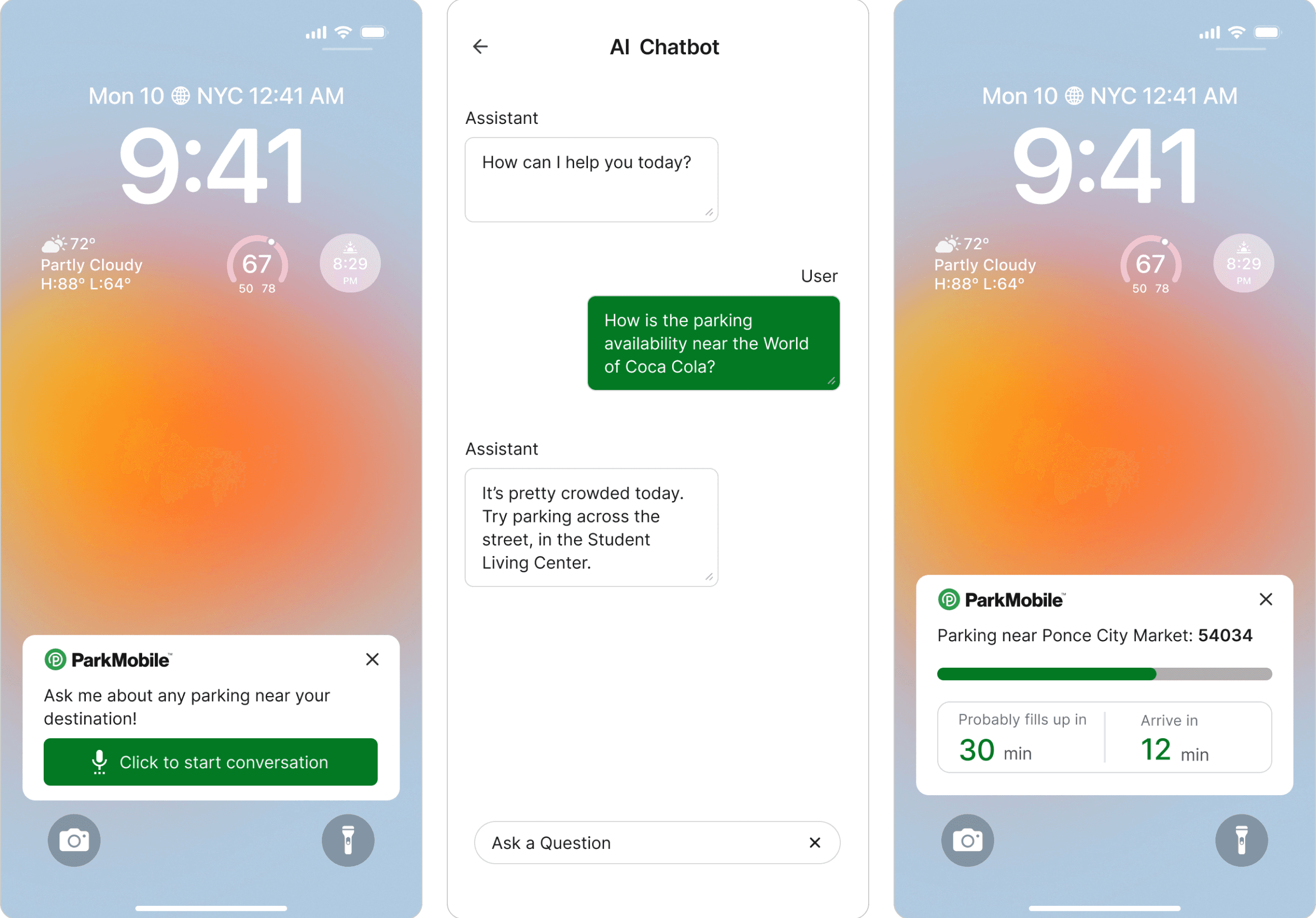 We continued developing the AI Parking Assistant, introducing a conversational chat interface and a contextual home screen notification that surfaces parking insights during a driver’s journey.