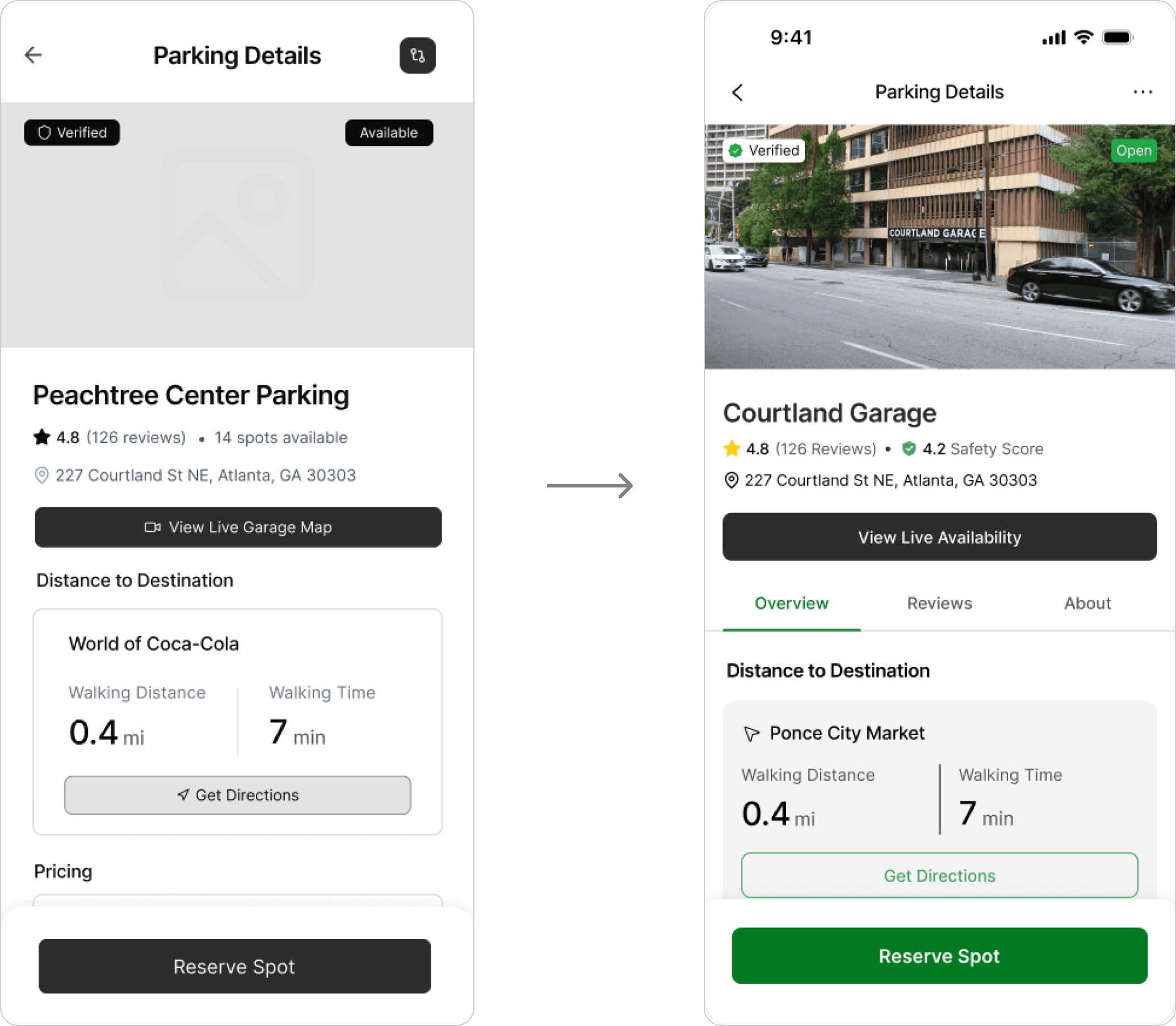 Throughout parking details and live garage availability, there were concerns around text and buttons that felt like they were competing with one another. In our next iteration, we focused on improving visual hierarchy.
