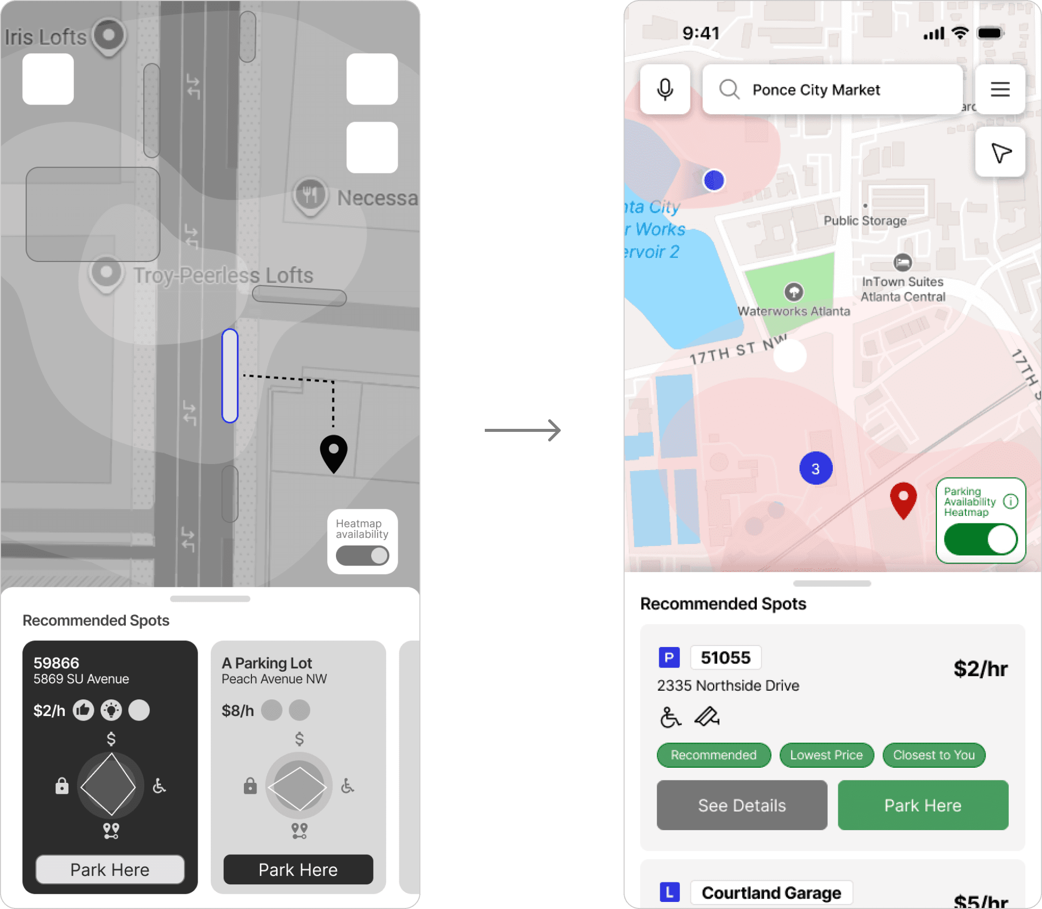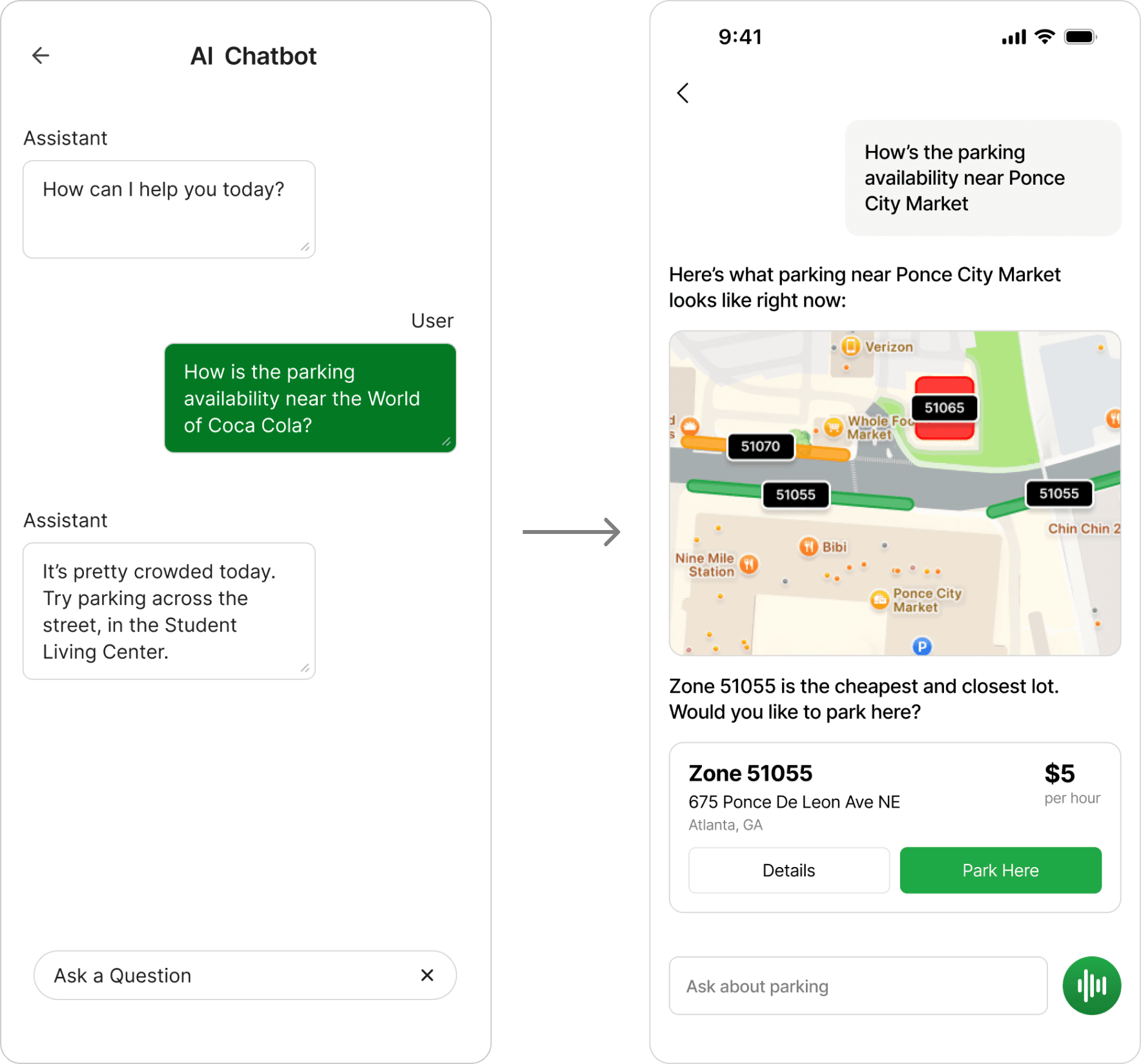 Rather than stagnant, text-heavy chats, users wanted more actionable intelligence that will provide and visualize parking availability.
