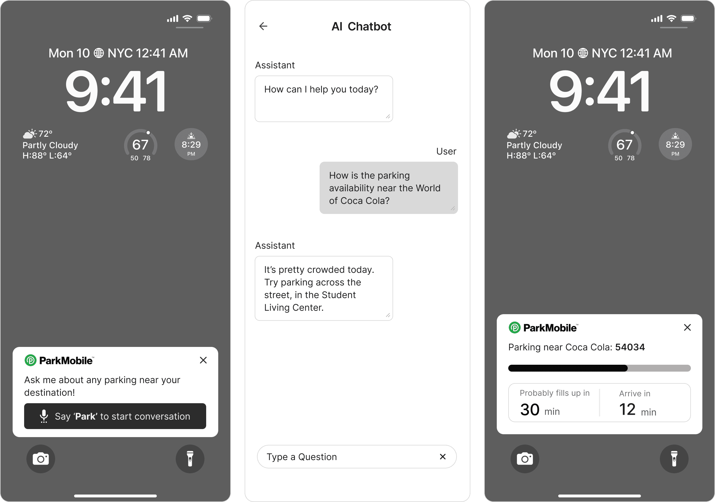 Our solution introduces an AI Parking Assistant that when prompted, recommends locations based on availability, pricing, distance, and other preferred factors.