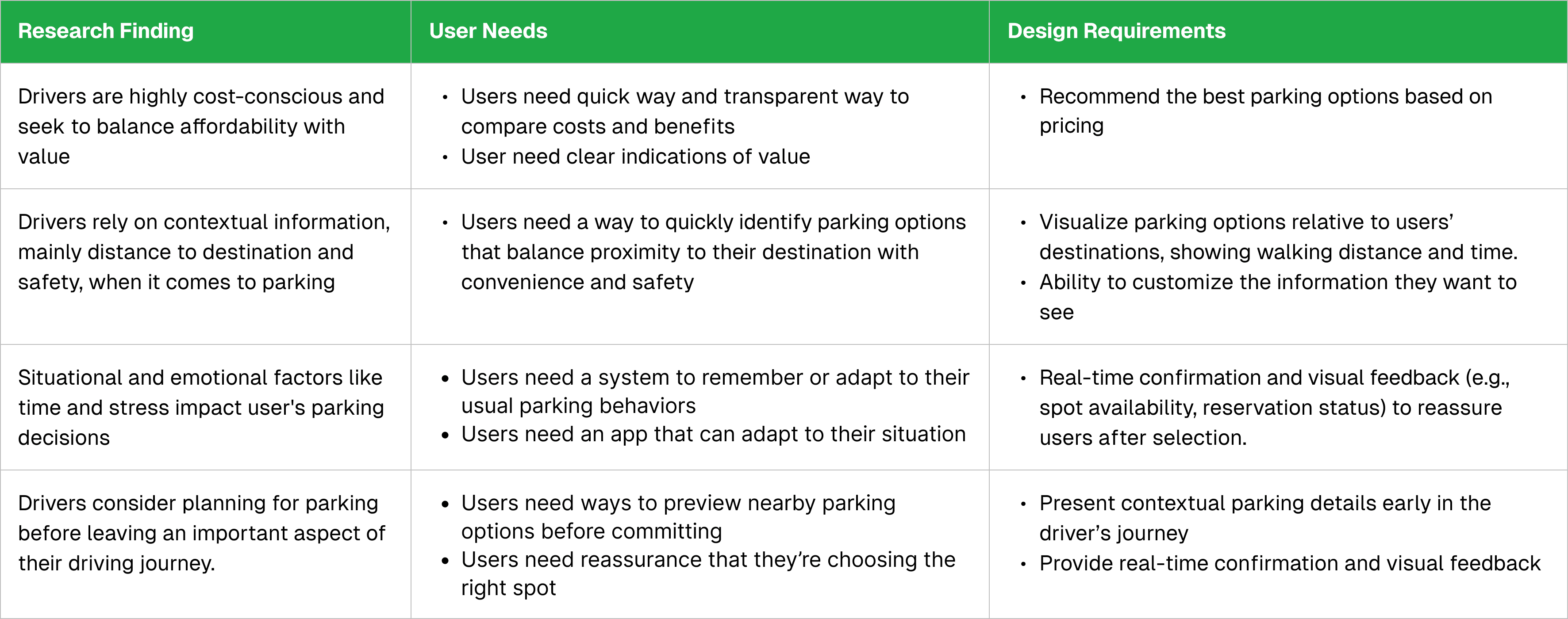We started by understanding how drivers behave and feel about parking and parking apps.